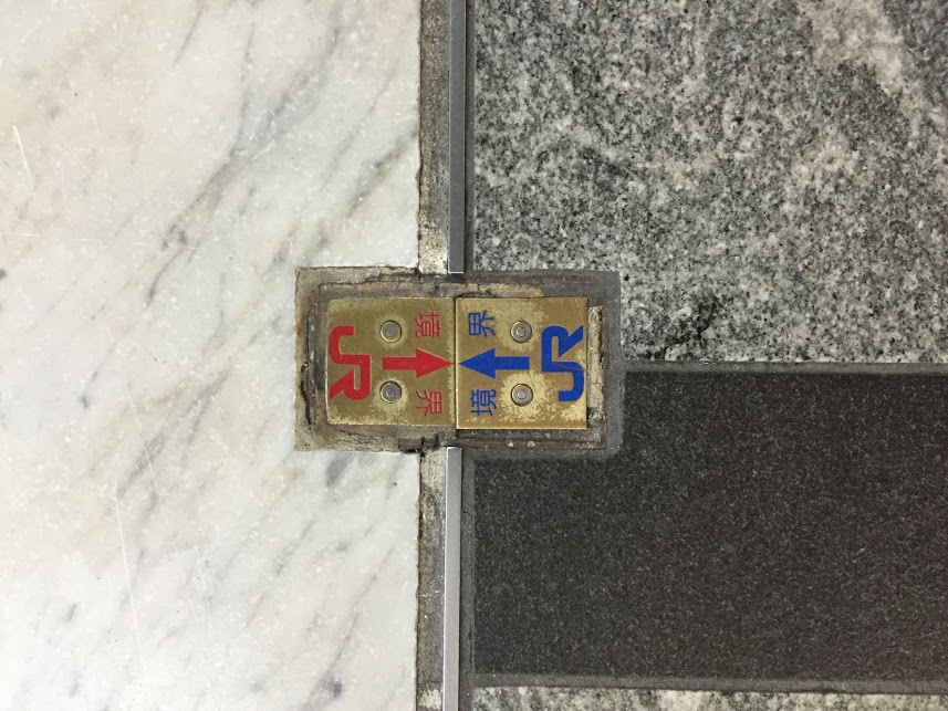 したがって、同じ博多駅においても、新幹線口においてJR西日本とJR九州と管理が分かれており、写真のように注意してみると駅の構内にこのような分岐板を見ることができます。
