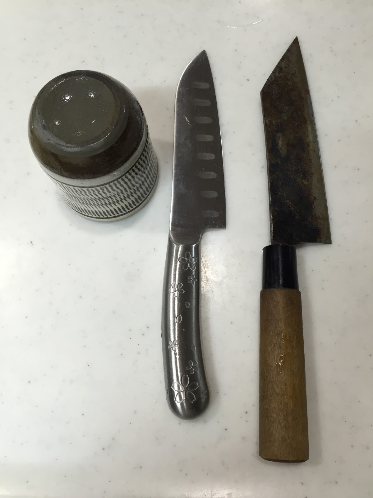 | ステンレス包丁と鋼の包丁と湯呑 |
