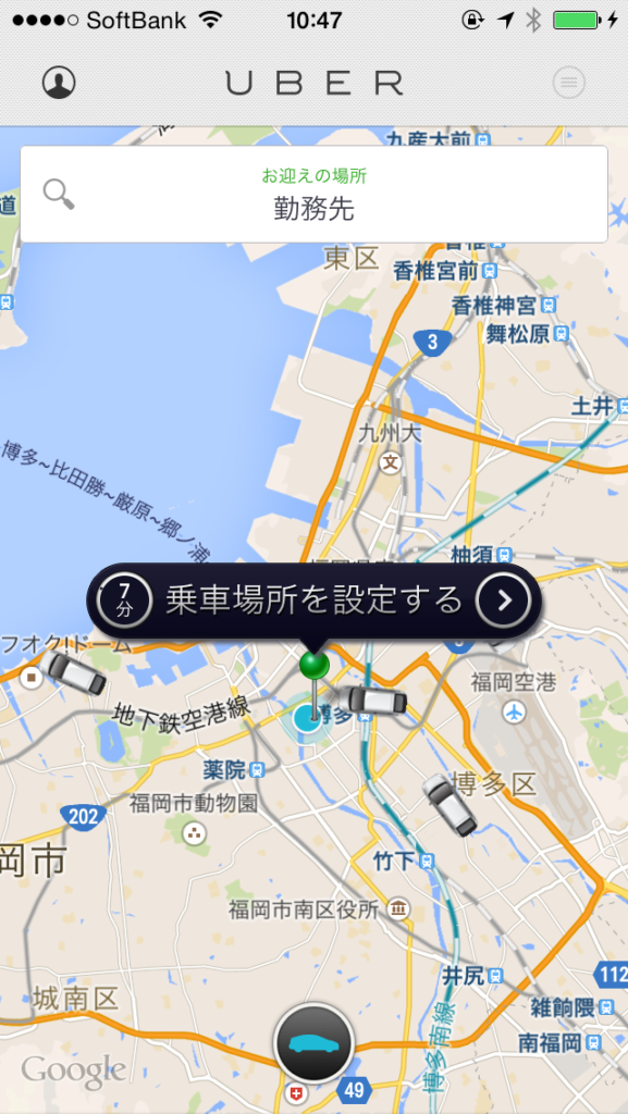 登録されたクレジットカードから利用料金として課金されるということですが、何と今福岡で展開している「みんなのUber」は現在ライドシェアの実証実験ということで、無料体験中なのです(週5回利用まで)。