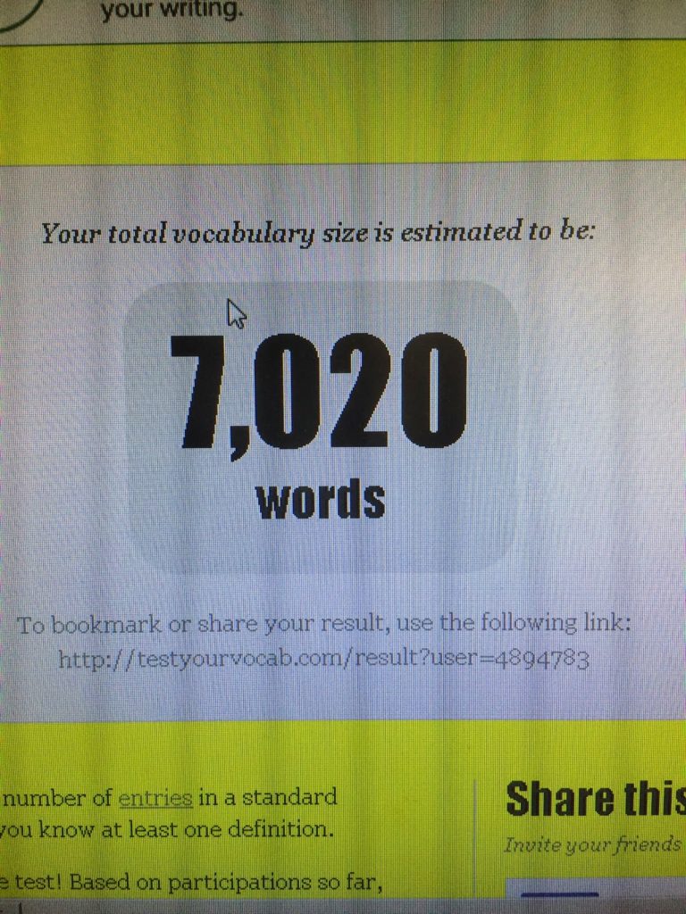 あとはサイトのコンピュータが結果から推定して自分の語彙数を示してくれるというわけです。