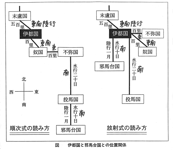 そうすると、伊都國から先の國は、全て伊都國を起点とする「放射状」の方角距離記載だという解釈をすることが「自然」だということになります。