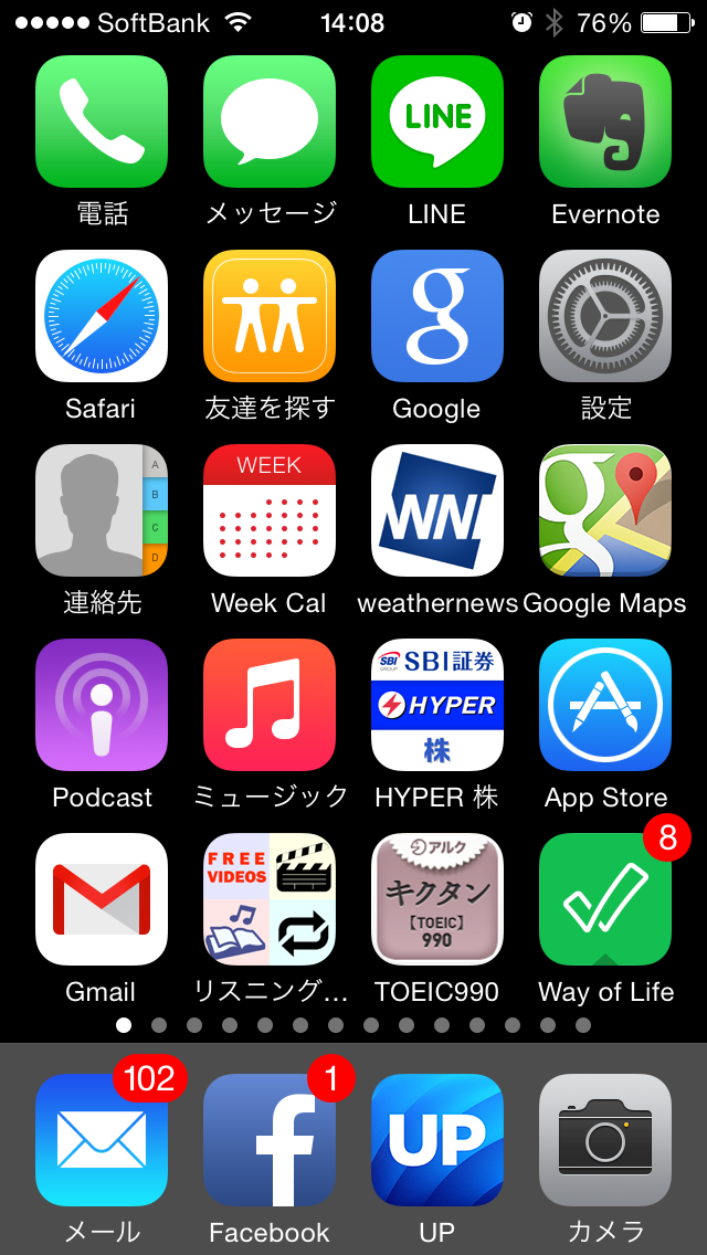 複数の読者さまより、「iPhone6ですが、アイコンの表示数は6x4に変更できる」旨の有り難いご指摘を頂戴しましたので、本記事の前提が崩れ恥ずかしさで一杯ですが、断腸の思いでこのままと致します。