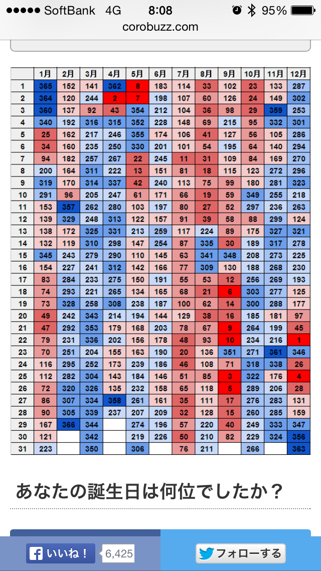 さて、実際一年は366日(閏年を含む)ありますが、実際のところ日本人で誕生日の多い日から少ない日まで並べてみたという表がありますので紹介したいと思います。