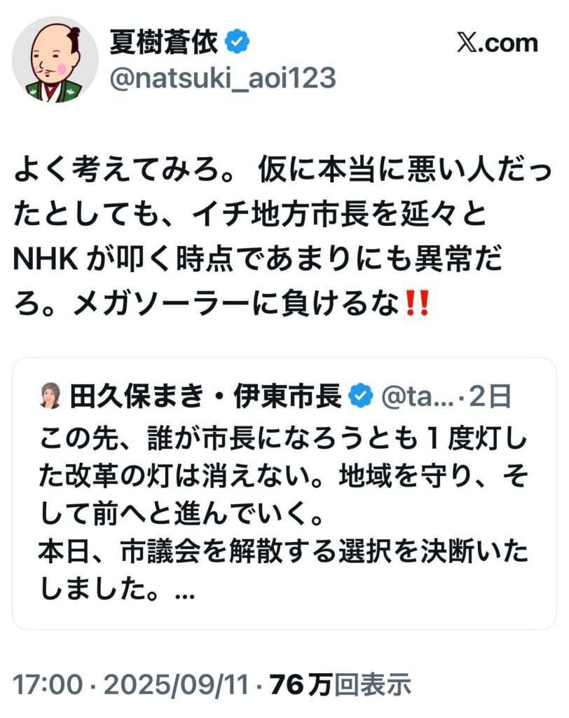 ついに田久保市長が動きました。学歴詐称?だったら東京都知事の小池百合子さんはどうなるのですか。カイロ大学なのかどこなのか。東京都民がスルーなら、伊東市民もスルーでしょう。市長と議会との役割が問われ直すことになるかと思います。