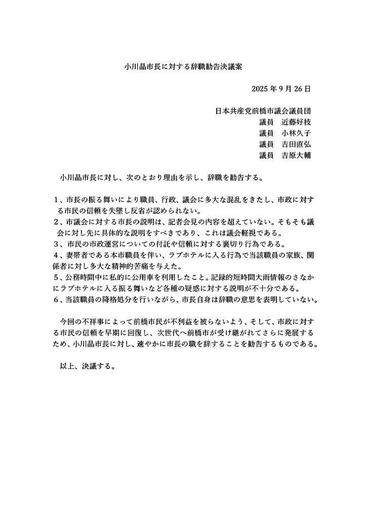 前橋市長・小川晶さんの不倫疑惑の件