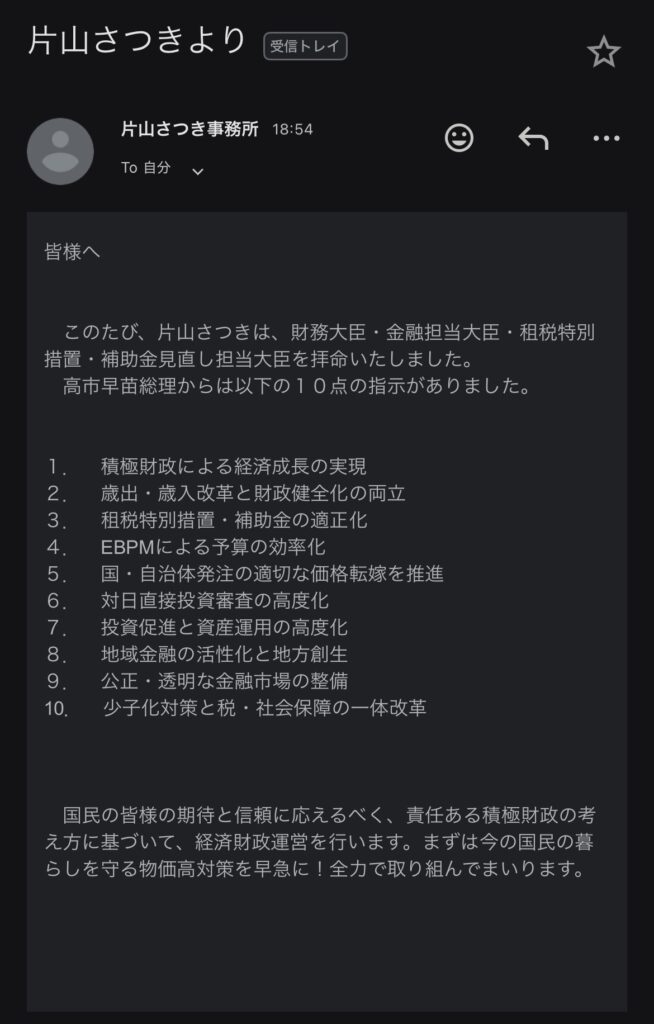 筆者は、ずっと前ですが、国会議員政策担当秘書として、来ませんかの誘いをもらった片山さつきさん事務所から、かかるメールを貰ったのです。嬉しいので掲げておきます。