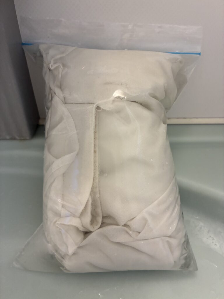 そこで、襟袖洗剤をつけて、つけ置き洗いです。一般の方々は、洗面器につけ置き洗いをされるのでしょうが、私は一般的な人ではないので、速攻効果を狙って台所で使うジップロックを用います。