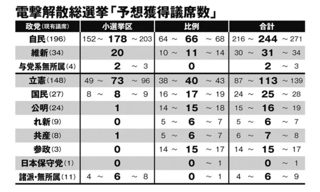 【表】各党どれくらいの議席を獲得できるか 電撃解散総選挙「予想獲得議席数」