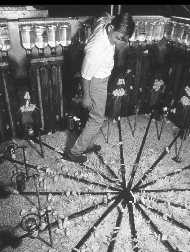 カルホーンは「マウスの楽園」と称する理想的な環境を構築した――無限の食料、清潔な水、捕食者不在、管理された温度、そして絶え間ない医療ケアが提供される空間である。