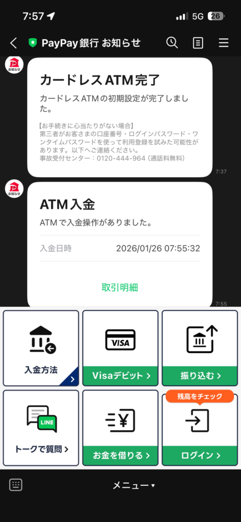 キャッシュカードを使わず入出金