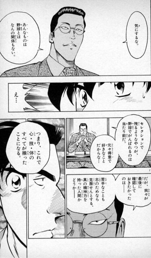 野球少年の主人公、茂野吾郎が名門海堂高校に入学する際にペーパーテストがある事を知り絶望します。野球しかやってこなかった吾郎は勉強は大の苦手です。一時は諦めて違う高校に進学しようかと迷いますが、仲間に諭されやれるだけやろうと勉強に取り組みます。