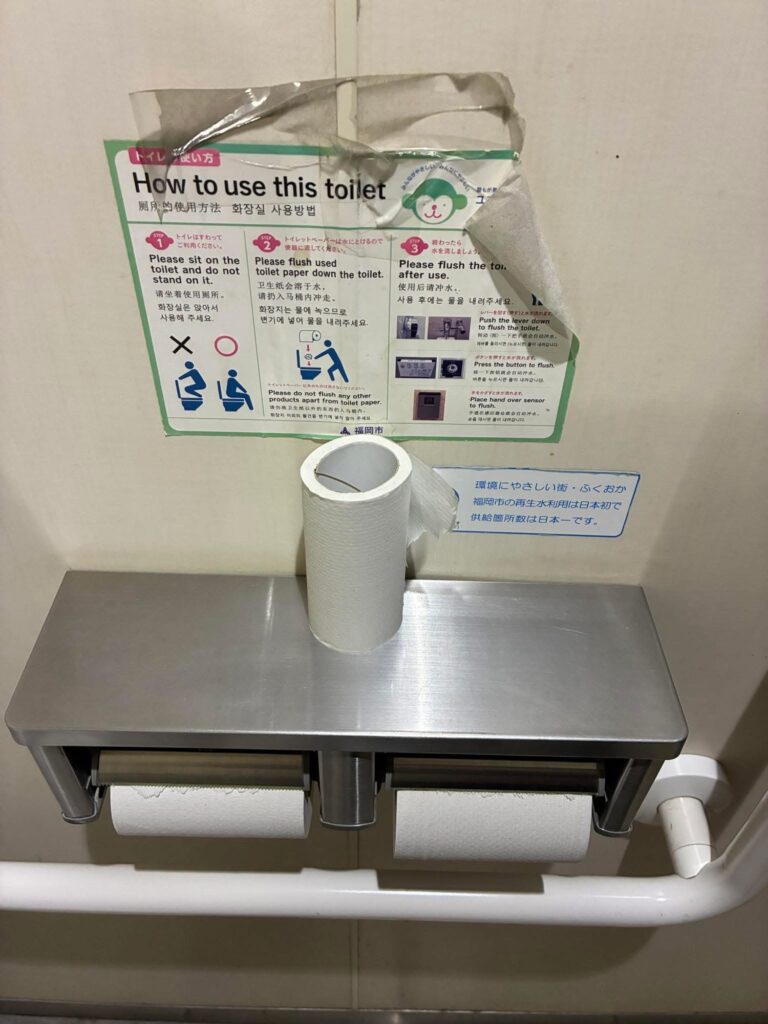 使い辛い位置にペーパーホルダーがある場合、予備のトイレットペーパーを使う事になる。