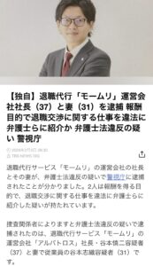 退職じゃなくて逮捕 退職代行モームリ社長夫妻逮捕さる繰り返す退職じゃなくて逮捕 退職代行サービス「モームリ」の運営会社の社長とその妻が、弁護士法違反の疑いで警視庁に逮捕されたことが分かりました。2人は報酬を得る目的で、退 […]